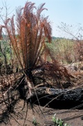 Encephalartos equatorialis, který najdete v narušené a často vypalované lokalitě.
